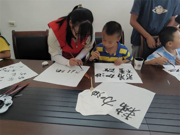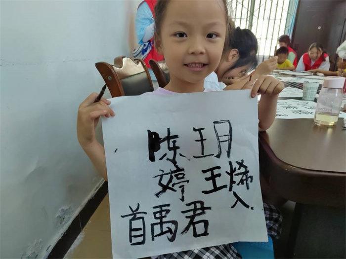 中国汉字是劳动人民创造的,最开始以图画的形式表示。经过几千年的发展,演变成了当今的文字,作为主要书写方式的毛笔书法便成为了中国特有的传统艺术。正所谓见字如见人,写得一手好字不仅自己赏心悦目,而且也能赢得他人的称赞。在团队成员们对毛笔书法的讲解后,小朋友们纷纷拿起笔写下自己的名字。他们在翰墨飘香的书法课堂中写下遒劲有力的文字,体会传统文化的魅力。