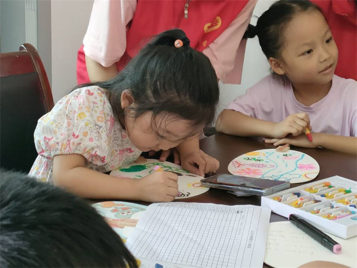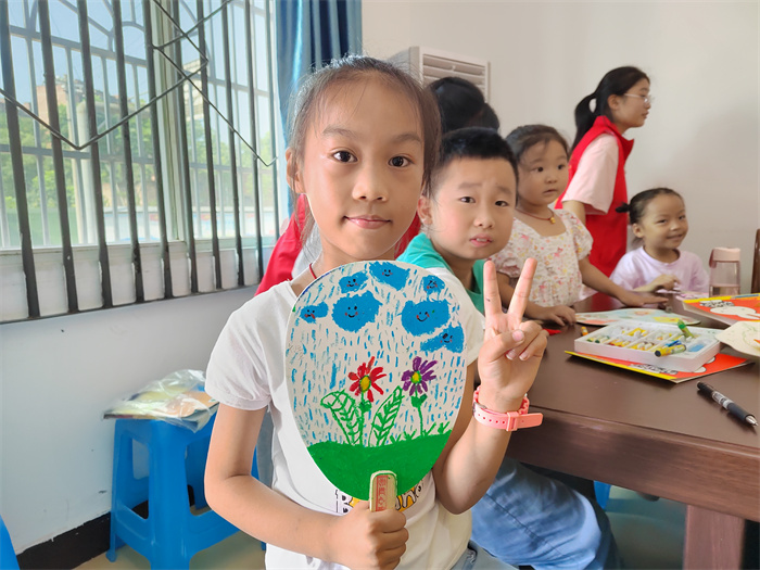 儿童少年绘画反映的是他们的认知过程,随着语言能力和思想认识的提高,人生必不可少的步骤,移通学院的团队成员为了激发孩子们的想象力,通过约束少、定式少的绘扇活动来达到此目的。在活动过程中,志愿者先给小朋友讲解绘画主题——感恩大自然,这培养了孩子们绘画的兴趣爱好,进一步了解大自然。让他们有部分感情寄托,这在一定程度上能缓解他们在心理上的情感缺失。