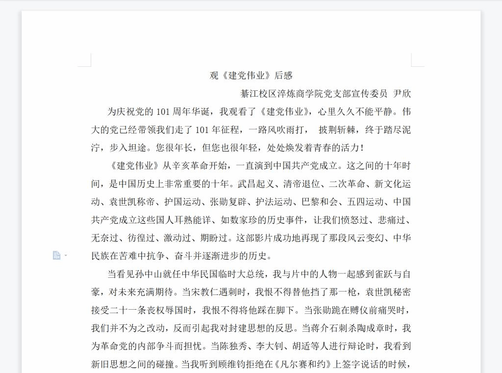 2022年是中国共产党成立101周年,为广泛开展爱国主义宣传教育,铭记党的历史,讴歌党的光辉历程,发扬党的优良传统,结合开展“学党章党规、学系列讲话、做合格党员”学习教育,綦江校区淬炼商学院党支部决定在全体党员和积极分子中组织开展庆祝建党101周年红色观影活动。