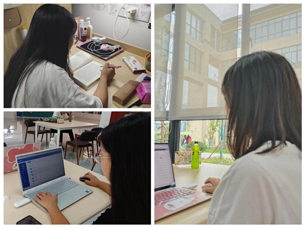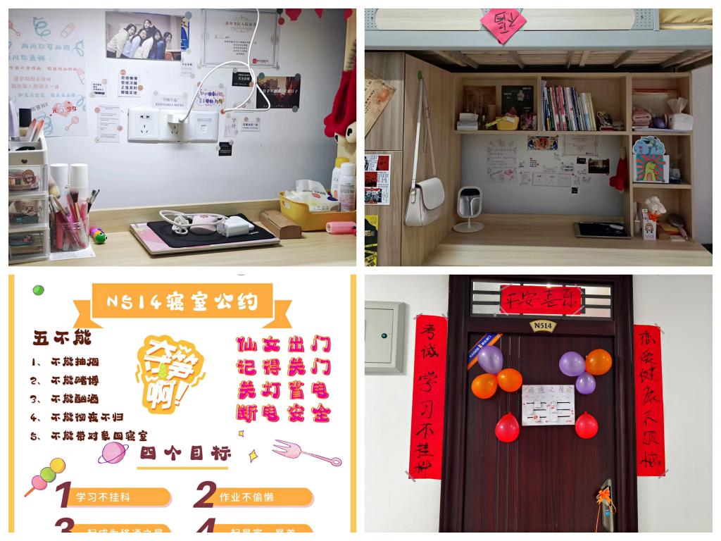 优良的学习风气,要从宿舍建设开始,建设良好的学习环境,离不开N514的每一位同学积极向上的学习态度。在大一第一学期,全宿舍大部分同学位列年级前一百。上课期间,专注认真,对待学习绝不拖沓;课后时光,积极上进,预习复习绝不落下;临近期末,严格计划,整体复习绝不松懈。寝室、空教室、图书馆和功能室,都留下了N514成员们专心致志、奋笔疾书的身影。成员们积极上进、相互解疑、毫不松懈的模样,展现出作为当代积极向上的大学生良好的学习风貌。努力是蜕变的基石,繁花锦簇和硕果累累都需要过程,N514的同学们一直奔跑在路上。