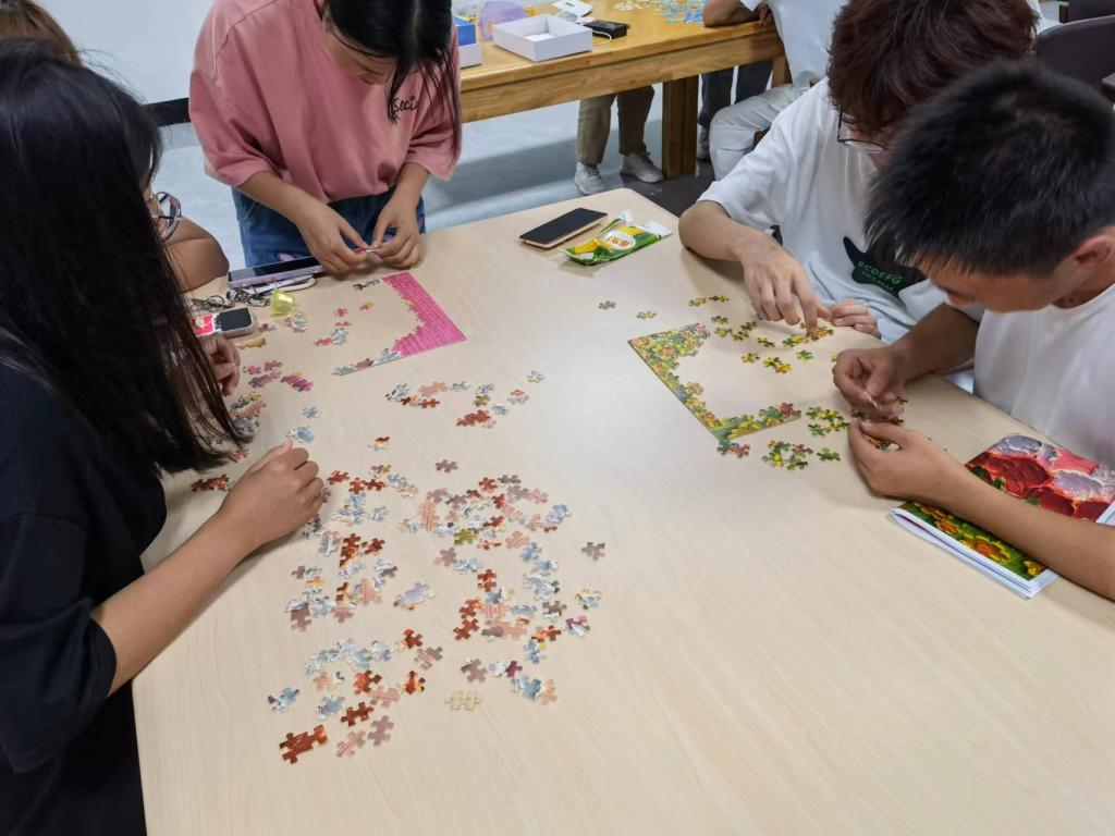 拼图,不仅能锻炼同学们的观察力,培养耐心、细心的做事习惯,也有利于在小组协作中提升同学们的团队协作能力。也希望通过此次活动,同学们能进一步感受到团队强大的力量。