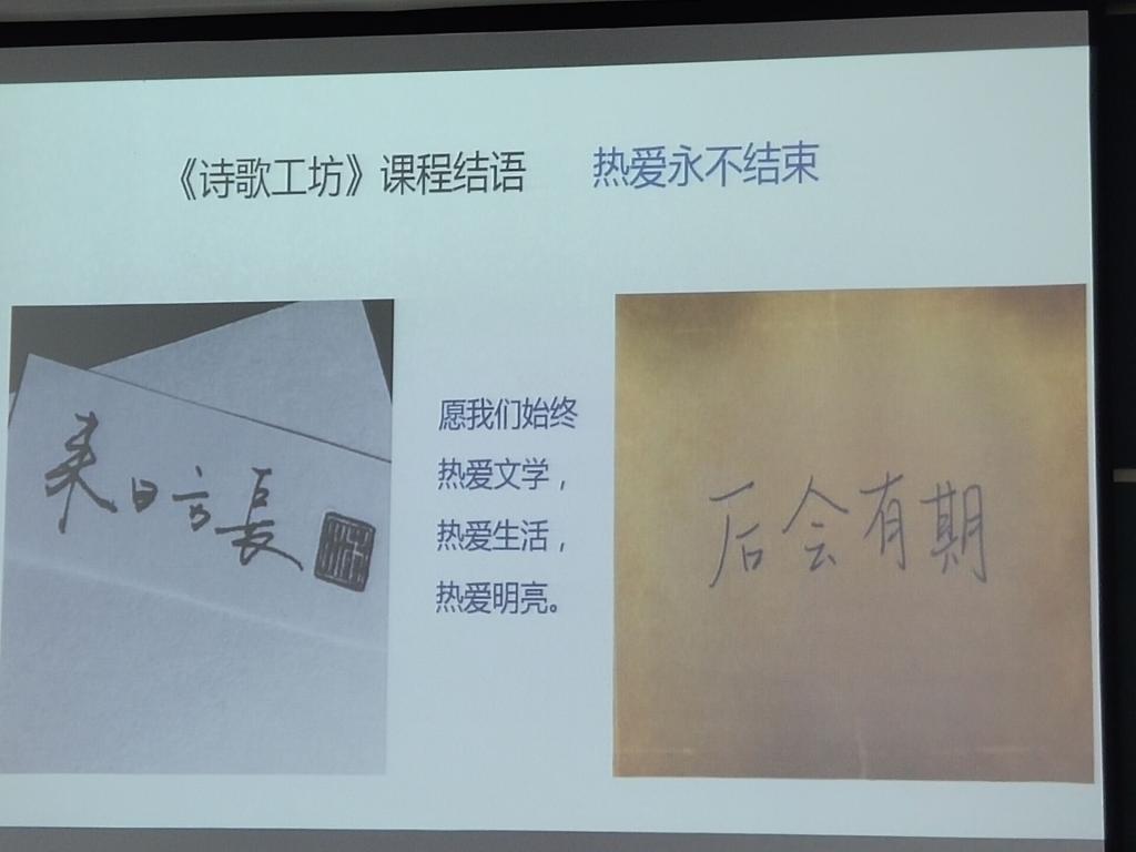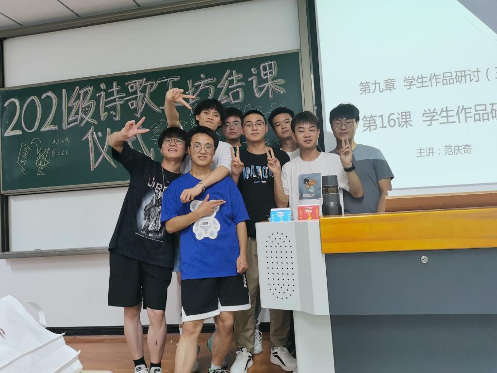 (2021级数据科学与大数据技术1班 李志斌)诗歌工坊的范老师和刘老师每堂课都认真负责,不仅上课内容丰富多样,而且课堂氛围活跃。