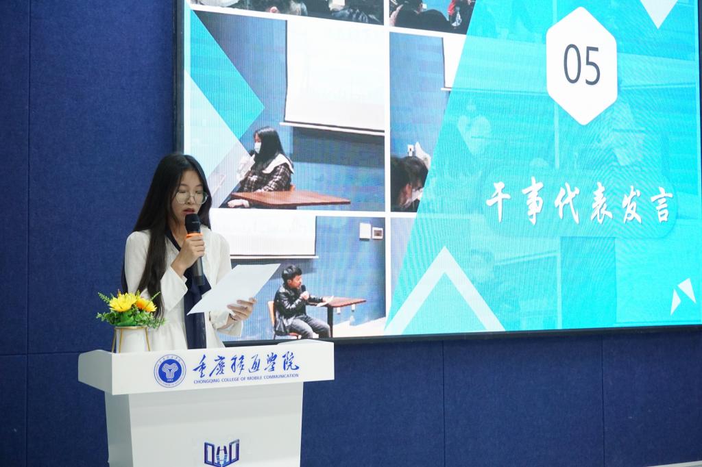 最后,綦河书院综合办主任卢柯毓老师对过去认真工作的同学提出了表扬鼓励并对所有同学送出了真诚的成长寄语:“感谢大家一年以来的陪伴和成长,无论去到哪儿,綦河书院永远是你们的家,老师永远是你们坚强的后盾!希望你们去征服自己的未来,可以奔向属于自己的星辰大海!”总结过去与綦河书院的共同成长,这离不开书院里每一位老师的悉心指导和干事们的勤奋付出。就像主持人说的一样“让我们把掌声送给过去一年里最棒的自己”,所有老师和同学们都在付出中共同收获,共同成长。