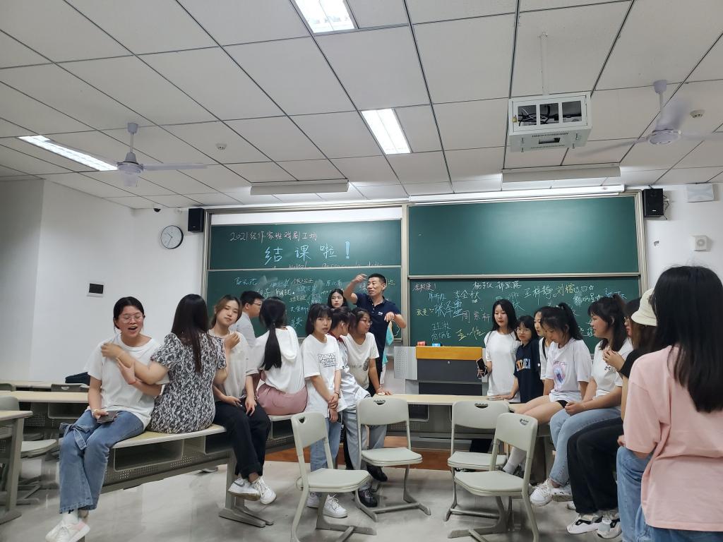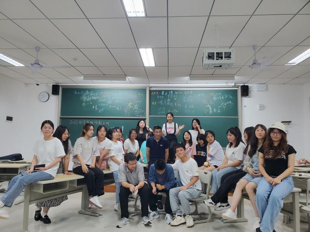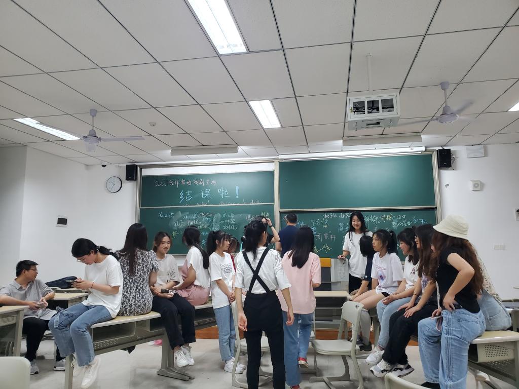 10日晚上的仁者楼308教室,创意写作学院2021级作家班戏剧工坊结课了,导师张林发表了一通结课感言,可爱美丽的段瑶老师忙前忙后为我们拍照。课间,两位老师买来很多小龙虾。这是一次伤感的相聚,也是一次幸福的离别。