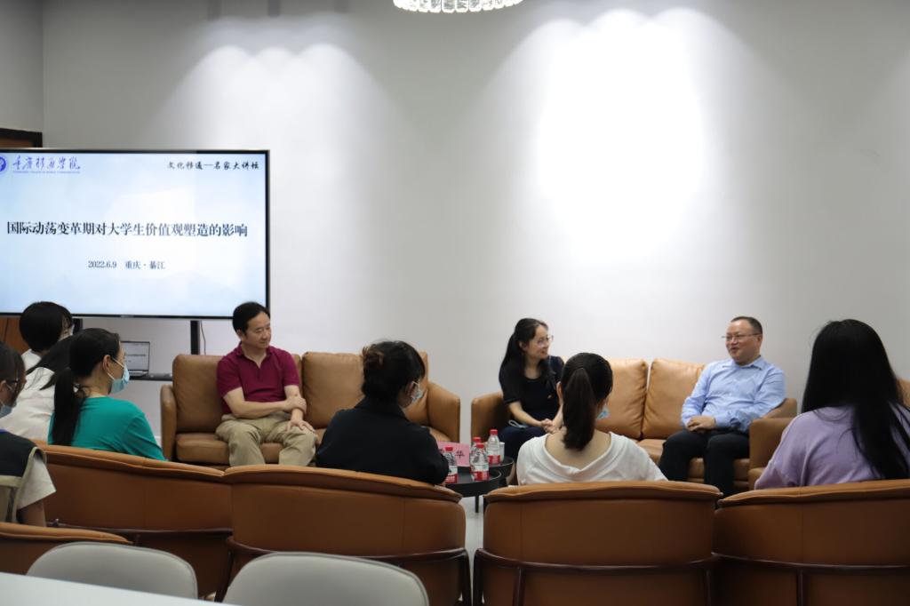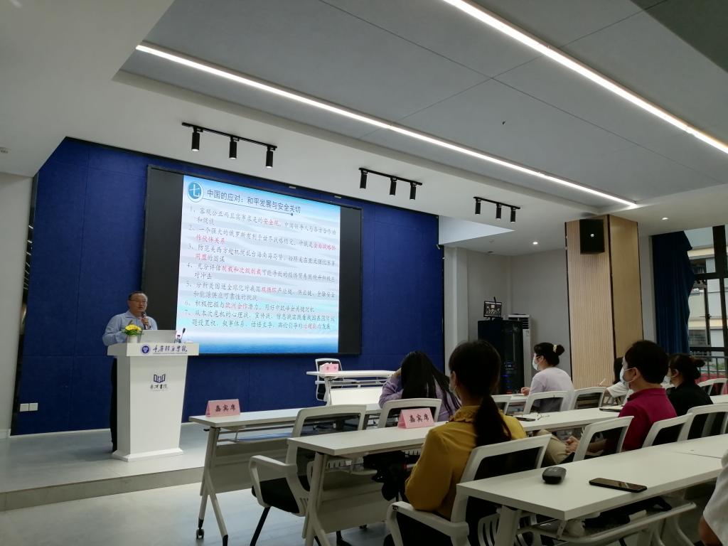 乌克兰危机发生在欧洲,但溢出效应波及全球,影响世界和平稳定和经济复苏。为了帮助公共基础教学部思政组各位教师能更好的讲述关于俄乌战争的形势政策课,从而引导学生了解掌握乌克兰危机产生原因、发展脉络、未来走向以及危机,进而培养学生的国际化思维。2022年6月9日下午3点,名师课堂邀请了重庆邮电大学国际学院曹华教授开展了“乌克兰危机及其世界影响”的讲座和“国际动荡变革期对大学生价值观塑造的影响”为主题的讨论会,公共基础教学部思政组全体教师参加。