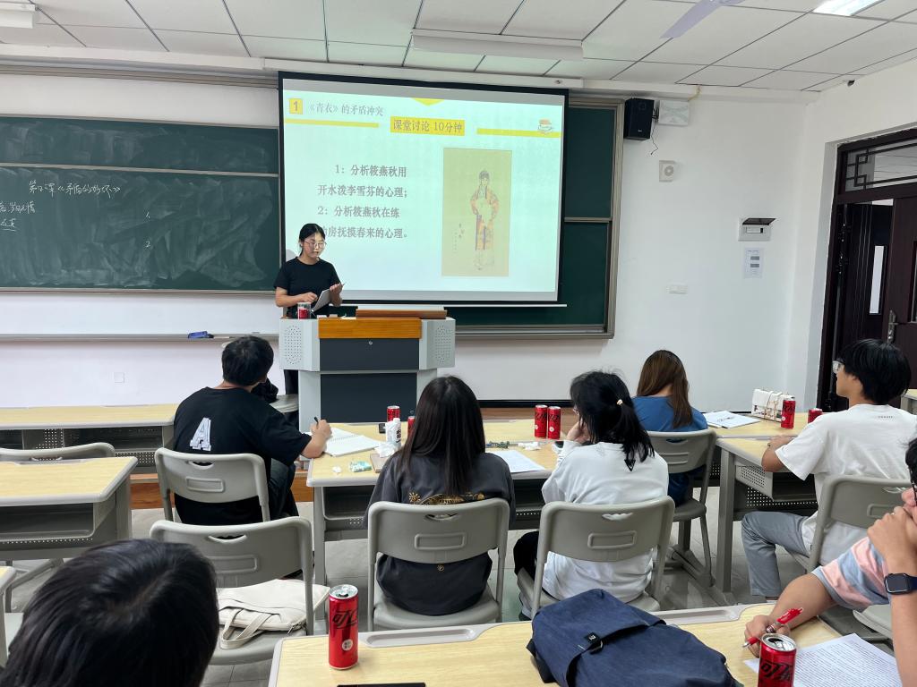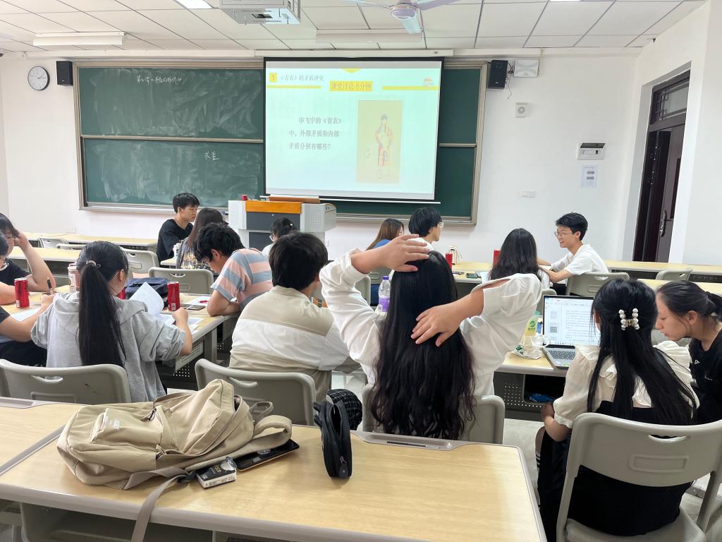 十分钟的讨论很快结束,我们分组上台陈述。首先是第一组的代表姜洪同学讲述,她说:“我认为第一个问题筱燕秋的心理是高傲,不平,认为李雪芬玷污角色;第二个问题的心理是羡慕春来的年轻和天赋。”接下来便是姜洪同学从文章中找出的论证。第二组的代表许真同学上台讲述,她说:“我认为第一个问题是嫉妒,第二问题我赞成姜洪同学的说法。”其他组的同学也一一上台补充。