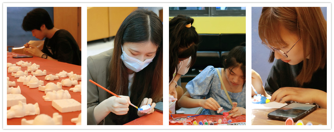 参与体验的同学们精心挑选了喜欢的石膏形象进行彩绘,他们画着石膏,也仿佛是在画着自己的童年。