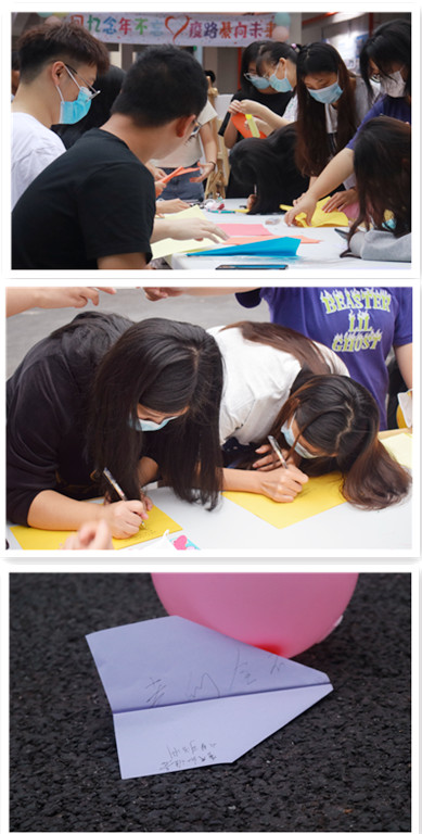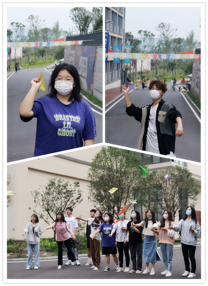 参与体验的同学们在彩纸上写下自己的烦恼或者梦想,再将彩纸折成纸飞机,随着主持人倒计时结束,一起放飞了手里的纸飞机。