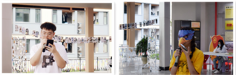 在书院中庭设置了歌唱台,同学们在这里可以尽情歌唱,尽情舞蹈,释放心中积压已久的压力与劳累。害羞的同学则戴上工作人员提前准备好的面具,体验蒙面歌手,唱出内心的感觉。