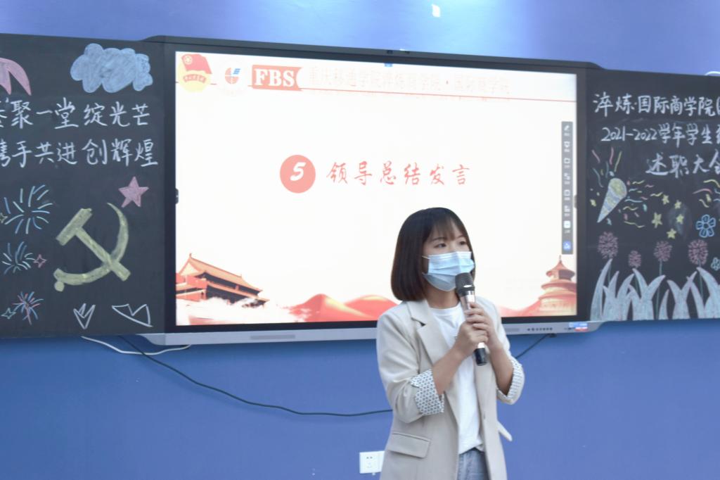 光阴荏苒,时光飞逝,转眼间,辛勤忙碌的学生组织工作即将落下帷幕。为进一步做好学年工作总结和工作规划,增强干事们的责任意识和创新意识,淬炼•国际商学院(綦江校区)于6月1日在QH7777智慧教室开展了以“‘綦’聚一堂绽光芒•携手共进创辉煌”为主题的2021-2022学年学生组织述职大会。出席本次大会的嘉宾有淬炼•国际商学院(綦江校区)学工办主任尹金维老师以及各板块指导老师肖琳老师、王凤老师、苟桃吉老师和成真老师。为积极响应疫情防控要求,本次大会采用“线上+线下”、“主会场+分会场”的形式同步开展,旨在确保每一位干事都能有参与感,回首辛勤耕耘汗水,见证硕果累累时刻。