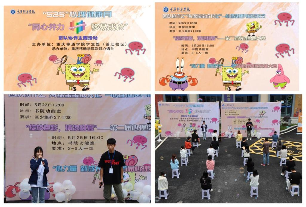 为解决大学生人际交往和互助问题,引导大学生关注自身心理健康、关爱集体,5月22日起,以“同心并力,移綦成长”为主题的心理健康系列活动在重庆移通学院綦江校区全面展开,通过运动健心、绘画修心、心委疏心三个方向,以学生喜闻乐见的方式开展我校心理健康教育工作,培养学生自我认知、集体意识、协作精神,增强团队向心力和凝聚力。活动由綦江校区学生处主办,彩虹心语社承办,包括“海绵宝宝成长记”团队竞技活动、“绽放色彩,清凉移夏”第二届心理绘画大赛、“心力量,新成长”首届心理委员技能大赛等。本次“5.25”心理健康月是继上学期“11.25”、本学期“3.20”外又一心理活动月,覆盖面广、新式新颖、报名火爆,深受学生喜爱和好评,三场活动累计4000余人次参与。闭幕式现场,全体心理委员同台竞技、互助互长,促进了业务能力提升,展现了朋辈育人力量。