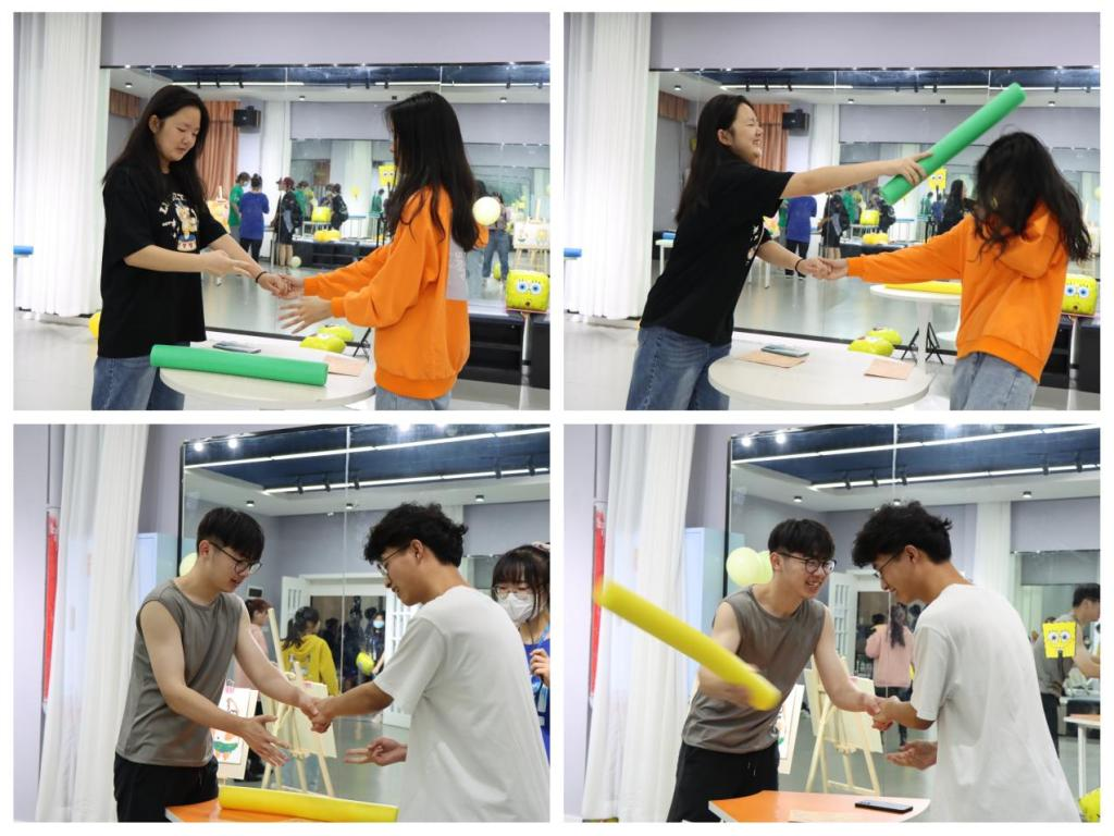 开幕式活动“海绵宝宝”成长记在欢笑声中拉开序幕,将心理学专业知识与运动竞技结合,以促进学生积极思考、灵活进行身体协调、充分参与团队配合,达到团队心理调适。学生通过扮演动漫中的角色,在个人与团队的共同努力下成功完成项目挑战,在活动中感知自我,了解自身能力和兴趣;觉察团体动力,发展团队精神;促进团队协作,培养队伍默契。活动分化为6个板块,运用个体到团队建立的精神,层层递进地向学生传达团队凝聚的重要性,强调个体是团体基础,展现学生个人特质,着重发展团队精神的向心力和凝聚力,让学生在活动中学会协同合作,体会个体价值与团队利益的统一关系,将团结精神表现出来。