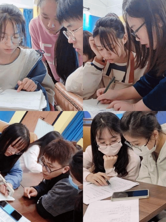 经过四十分钟的分享后,大家进入互相讨论、提问环节。现场气氛达到高潮,同学们积极说出自己的看法、提出疑惑,学生与学生、学生与老师都相互激烈的讨论着。看到同学们从刚开始的紧皱眉、对知识没理解透的焦急之情到最后露出那满足的笑容,同学们在这一个多小时中解决了困惑许久的疑惑,每位同学脸上的微笑就是綦π·数学角里最好的风景。对于学有余力的同学们,团队老师也出了相应知识点的题目来让他们解答,帮助同学们更好的掌握矩阵与多元函数。
