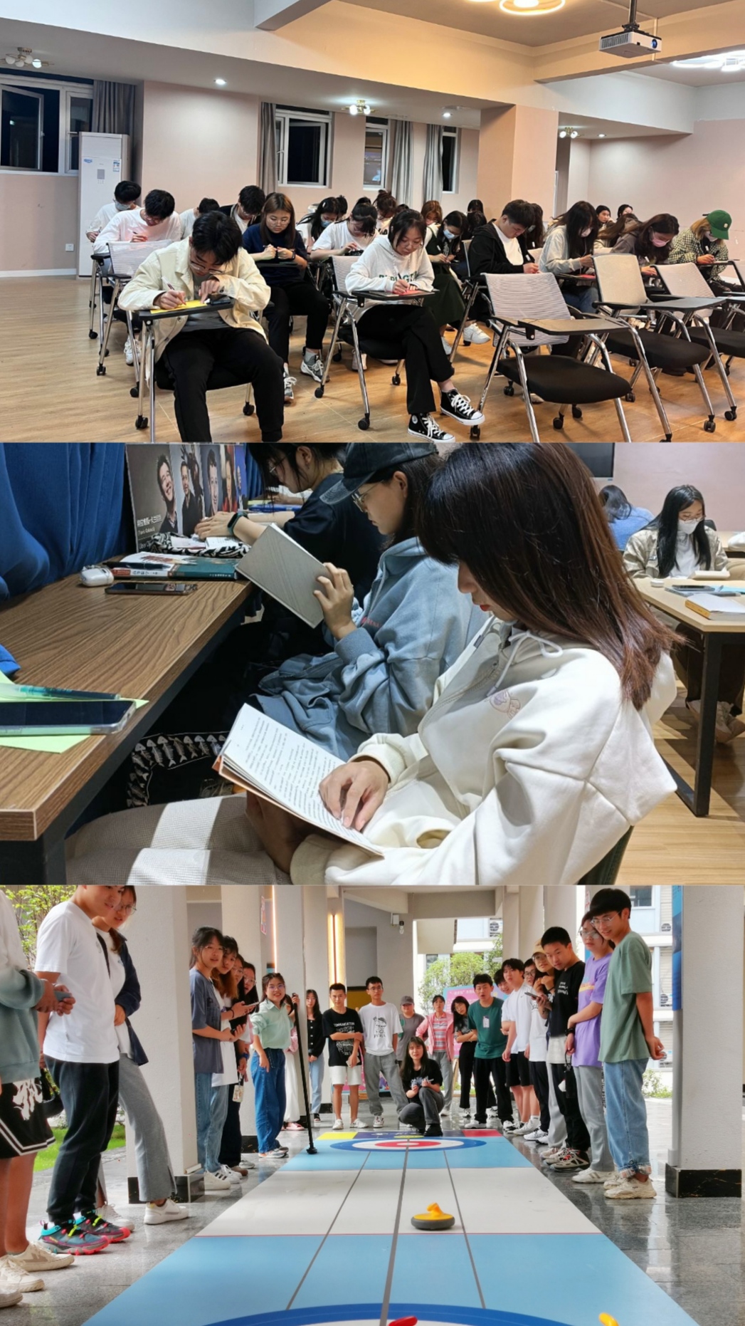 “回聲·阅读角”和“议·综艺角”陈紫涵同学分享到,“蝉噪林逾静,鸟鸣山更幽”,书友围坐在桌前,在本学期的活动中参与者的阅读习惯在不断养成,出现常驻人员,吸收内化书本,跳出书本去进行深层次多元化的思考与创作。未来我们将进行更新颖多元的活动形式来维持并提升活动效果。