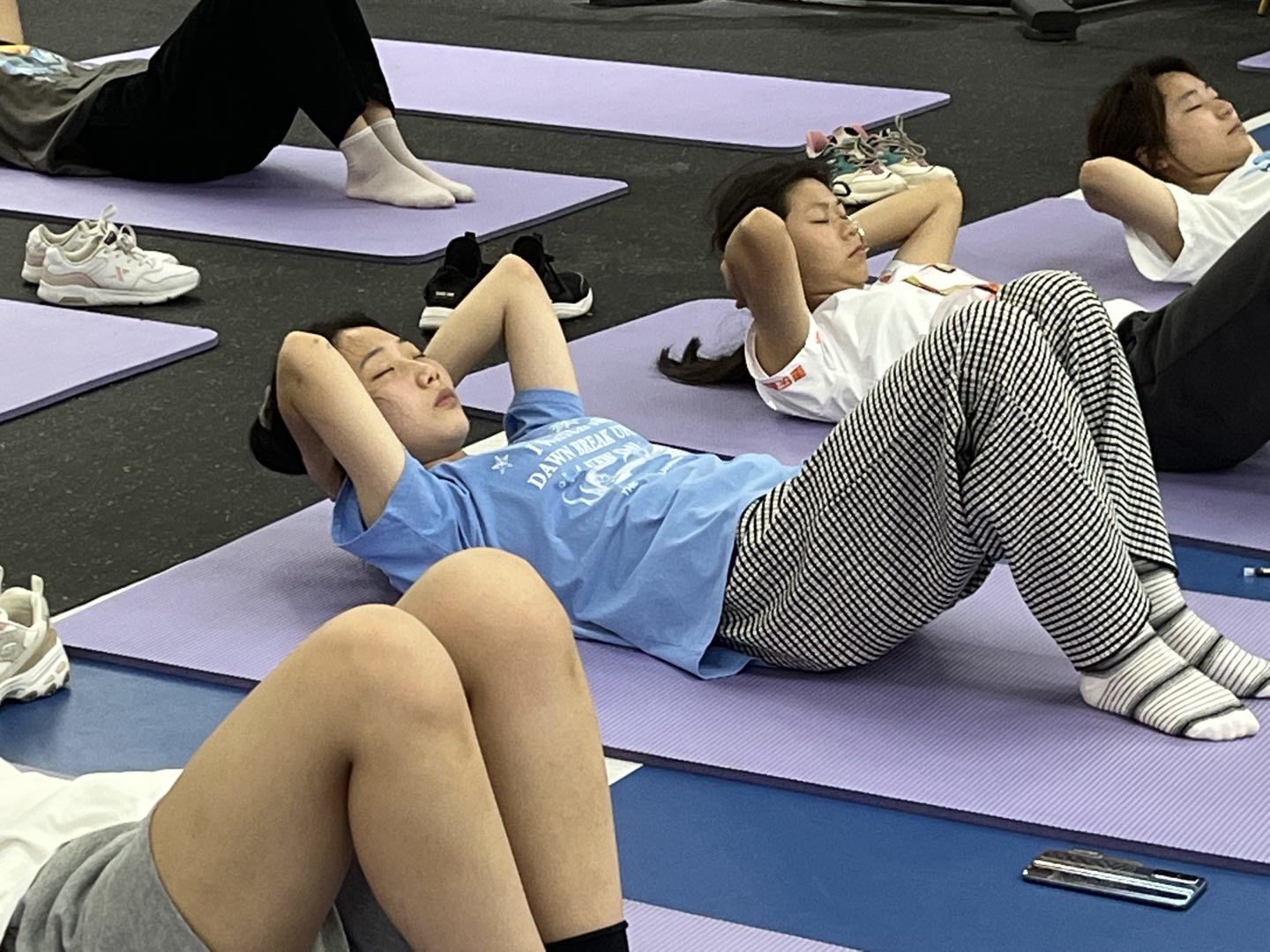 随着“Come on我的男友力”专题和“快乐燃脂甩走拜拜肉”专题的课程的完满落幕,我们迎来了新一期的专题课程!5月24日,由陈洋老师带来的“Lucky girl”女士健身专题与大家隆重见面。在开始,一阵熟悉的音乐传来,“摆起臀、腿抬高,腰间赘肉咔咔掉”,刘耕宏时间到!陈洋老师带着同学们开始了热身,让大家的身体充分预热,在运动过程中更好的发挥运动水平。
