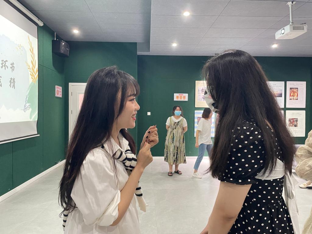 “哈哈哈”——这是从现场传来的笑声,原来是师生之间进行了“你画我猜”的小游戏。现场的老师们各自与同学们四人组成一队,老师将题目用比划的方式传达给同学们,最后再由另一名老师猜出题目内容,在欢声笑语中师生之前的情谊也进一步拉近。