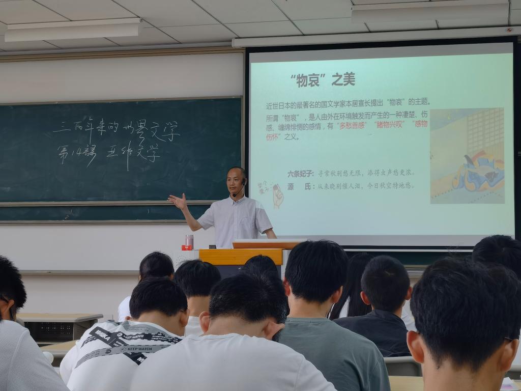 郭老师频繁抛出问题与学生互动,对答出来的同学予以赞扬,对语塞的同学予以鼓励。文学本就没有一蹴而就的成功,而是一个缓慢积累的过程。郭明老师出题,《源氏物语》中源氏与《红楼梦》中贾宝玉两人都是泛爱的典型,请你谈谈这两个人物在泛爱方面的不同。