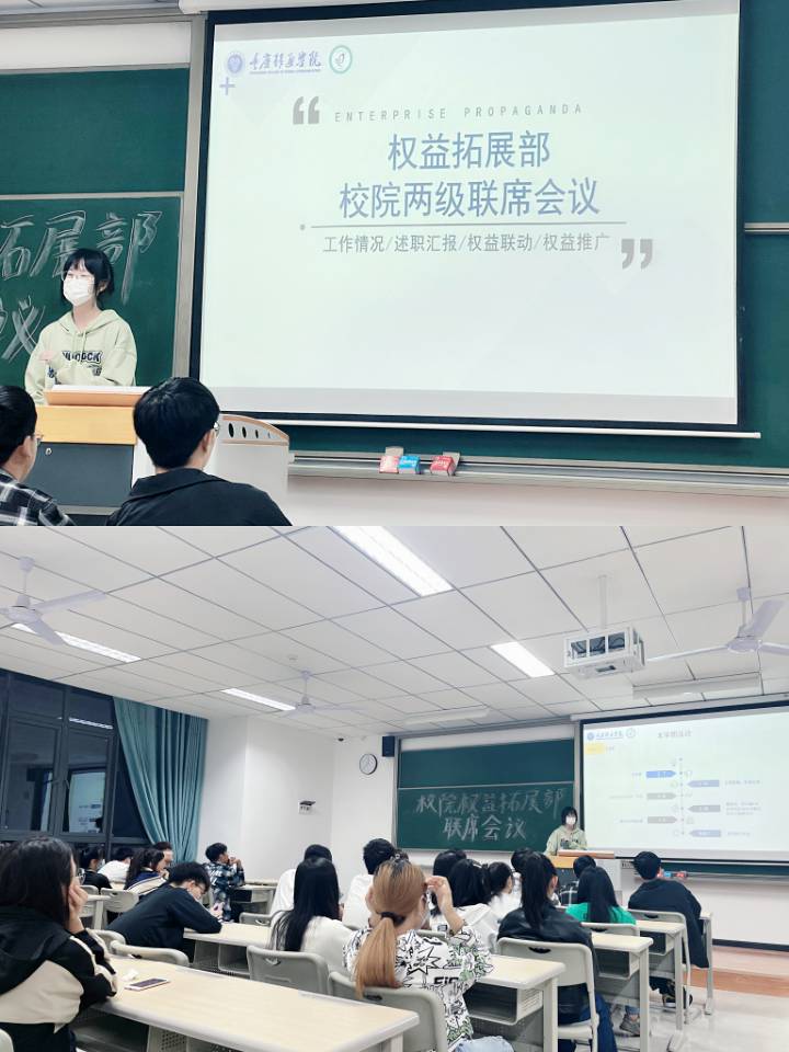 本次会议以合作交流与工作总结为目的,加强校学生会权益拓展部和各二级学院权益拓展部之间的联系,从而使得校院两级学生会权益拓展部更密切、更协调地进行工作,为同学服务。