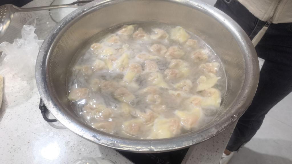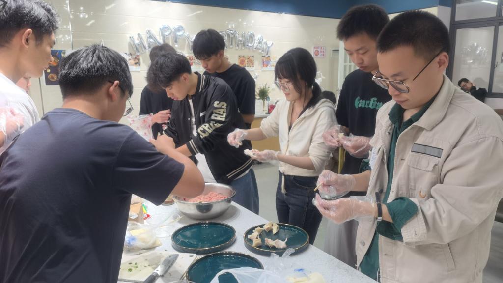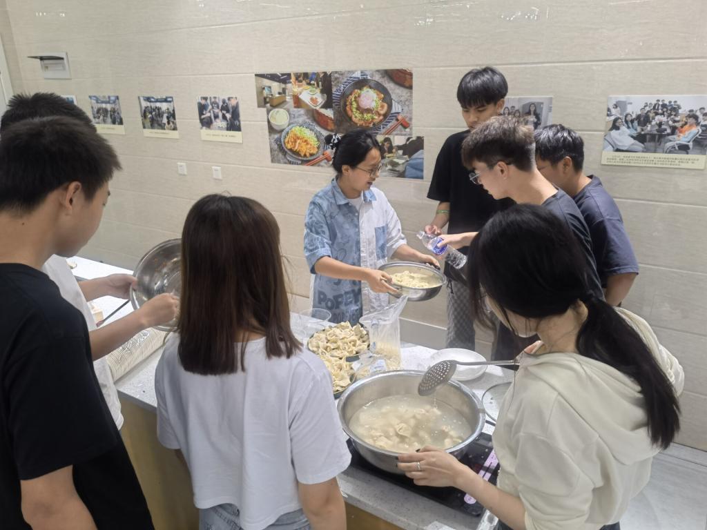 除了凉面的制作,5月21日李俊颖老师还带领着异科班的同学们在共享厨房开展包饺子活动,将准备好的面皮、肉馅放置在案板上,同时为学生们提供了和肉馅的技术指导,接下来大家分工协作,动作娴熟,有条不紊,纷纷使出看家本领,活动现场欢声笑语,热闹非凡,大家忙得不亦乐乎,经过一个小时的努力,包出了一排排独具特色的饺子,有大有小、有圆有扁,月牙饺、元宝饺等造型相继出现。有的同学是第一次包饺子,虽然动作略显笨拙,但包出的饺子还是有模有样!