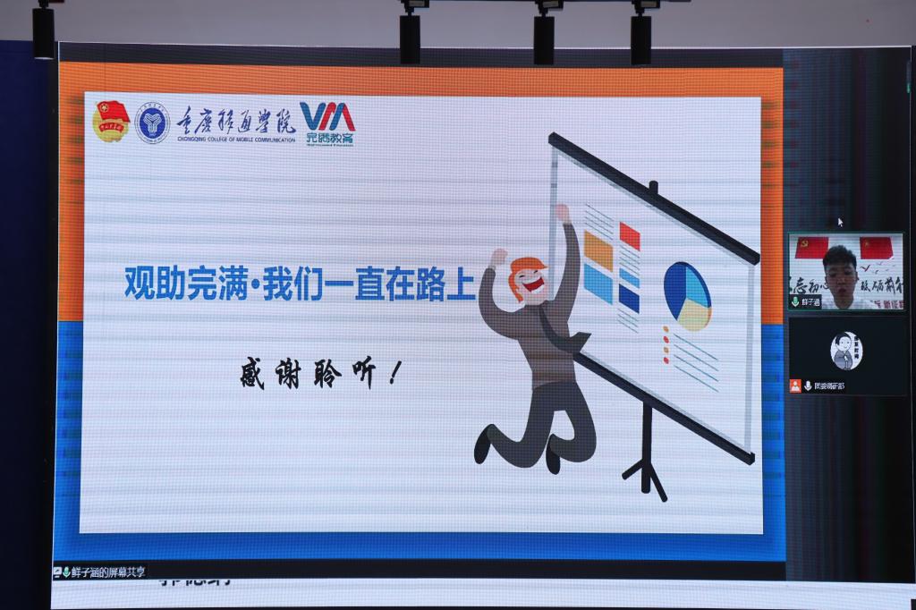 完满观察团是一支为提升完满教育活动质量、提高我校完满教育师生满意度,客观公正评价各完满教育工作开展成效的队伍。校团委指导龙凤老师向各位完满教育观察团成员深刻解读完满观察团职责,讲述2020-2021学年合川校区完满教育观察团开展情况,对2021-2022学年綦江校区完满教育观察团工作内容和规划进行解读。