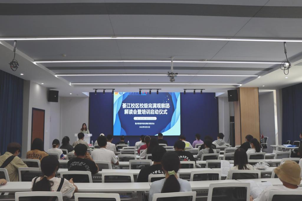 2022年5月23日12:30,校团委于QH2222观涛多功能报告厅举办2021-2022学年綦江校区校级完满观察团解读会暨培训启动仪式。团委副书记蔡星宇老师出席本次启动仪式,校级完满观察团五大专项观察组指导老师和成员共40人参会,团委龙凤老师主持会议并宣布校级完满观察团工作正式开启。