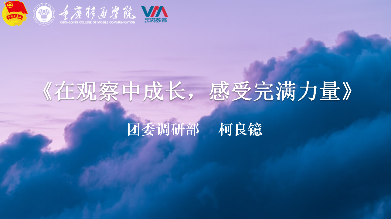 在评估中与完满对话,这是专属于“观察员”的浪漫,鲜子涵同学也在最后祝愿我们綦江校区的观察员们在这场与完满的碰撞中,收获到专属于自己的一份感悟。