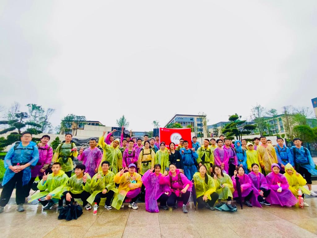 让运动挥洒汗水,让青春闪耀光芒。为提高同学们的心理毅力,锻炼同学们的身体素质,迷彩俱乐部依托社团文化艺术节举办“白云观远足拉练”活动,通信与信息工程学院电子信息类18、19班异科班在黄杜娟老师的带领下,17名同学报名参与26公里远足拉练活动,让五彩青春在5月的綦江绽放!