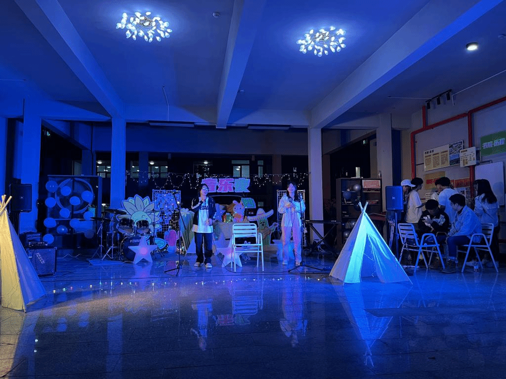 民谣、嘻哈、流行、以及乐队等多种类型的歌曲,也有古筝、吉他、贝斯、架子鼓等乐器的表演,这个夜晚,以音乐来共度,为平淡的生活增添一点社团乐趣。