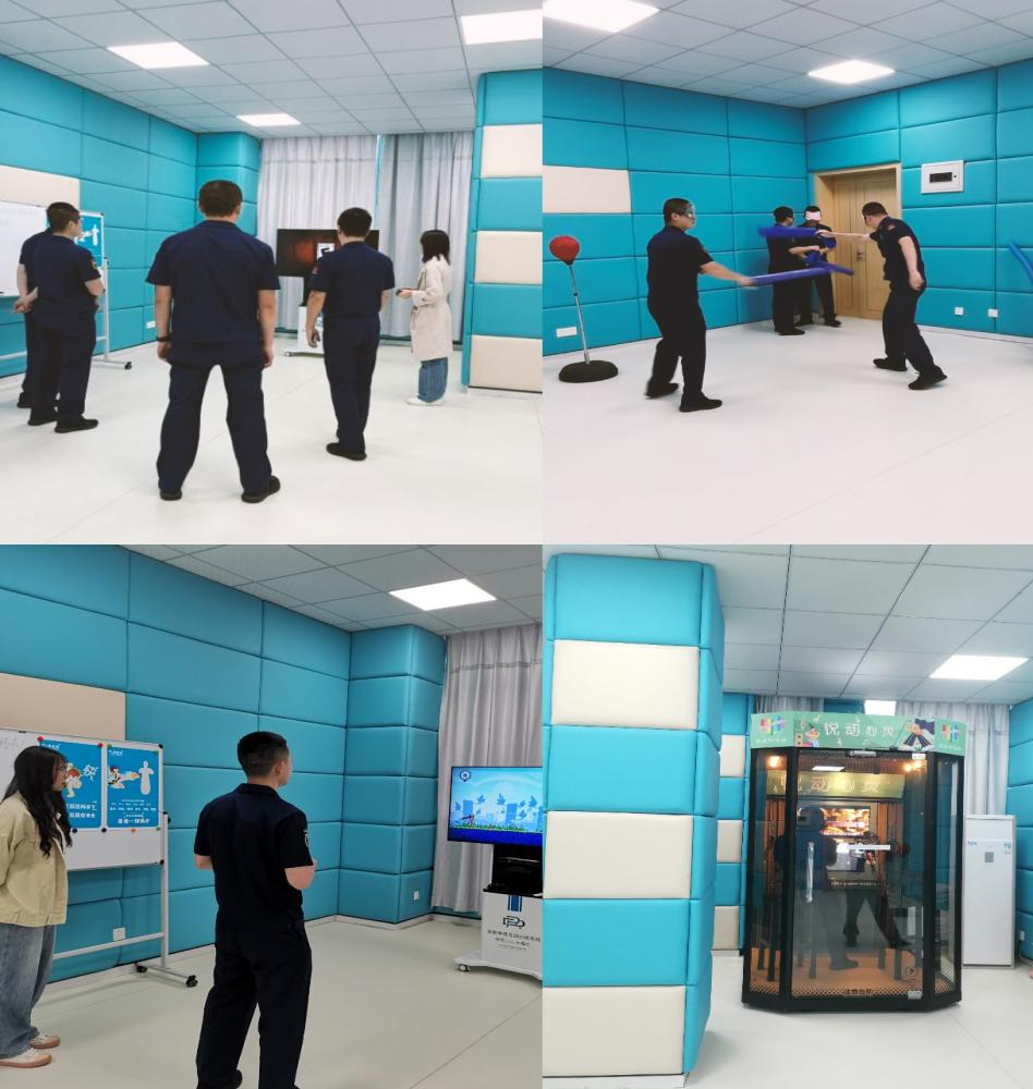 林老师对曾副政委一行的到来表示热烈欢迎,简单介绍活动的流程,通过心理功能区体验与绘画心理分析技能学习两个环节来疏导各位消防员的心理压力。林老师和两位朋辈心理咨询员向消防员们逐一介绍各项心理设备,并引导其亲自参与体验。现场氛围非常活跃,消防员们积极参与活动,争相体验悦动心灵、宣泄盲打、体感训练、心理沙盘及音乐放松椅等项目,通过肢体运动释放平时的工作压力,减少心理负担。