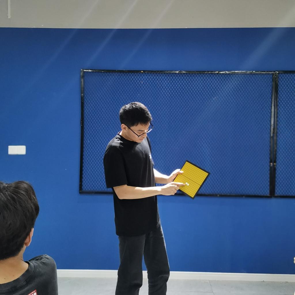 5月10日是棋艺角的第一期,主题是“以棋会友——五子棋”,在正式开始之前,弈秋棋社的徐志伟同学给大家简单介绍了五子棋进阶玩法,包括基本技巧,如黑棋以攻为守,白棋以守为攻和常规阵法的一字长蛇阵、燕阵,同学们都在认真仔细地聆听,希望对这场游戏以致以后的对弈有所帮助。