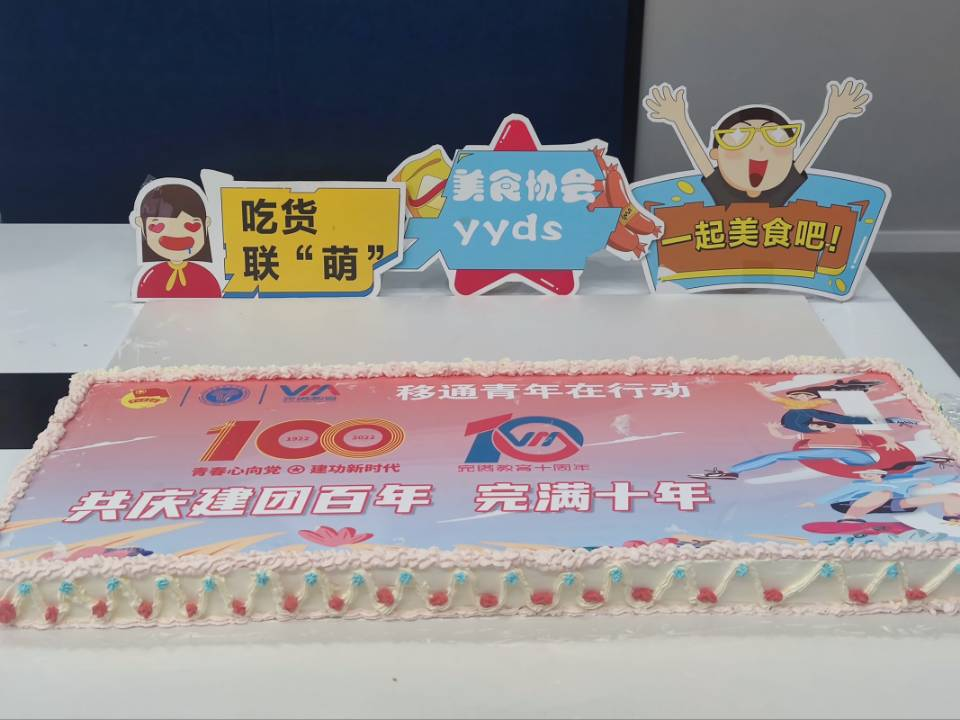 为庆祝中国共青团成立100周年、完满教育10周年,重庆移通学院美食协会借首届社团文化艺术节社团专场活动,于5月14日在长风·交流空间制作长达1米的巨型“庆生蛋糕”来献礼、纪念这美好的时刻。