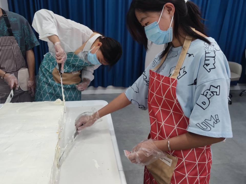 在十一位同学近三个小时的共同努力下,终是“功成愿遂”。这里的功成是指蛋糕制作完成,更是见证者中国共青团成立100周年之际,广大团员青年能够自觉担任重任,让青春在实现中华民族伟大复兴的中国梦中绽放异彩,为党和国家事业取得了历史性成就、发生历史性变革,贡献了青春的时代担当。身为当代大学生,不仅能够亲身参与到新时代的建设中,亲眼见证这一盛世,还能亲手制作一份独特“礼物”送给亲爱的祖国,何尝不是大学生涯里一段美好的记忆。