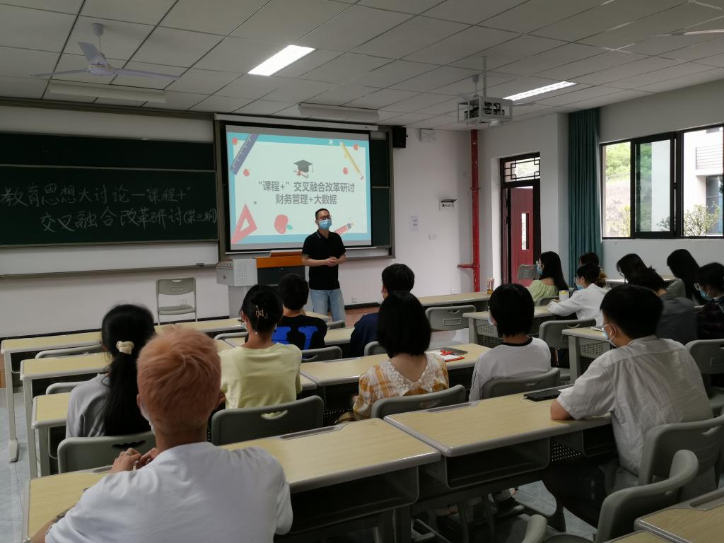 为落实我校教育思想大讨论工作,加强与完满教育、通识教育、专业教育的联动融合,促进我校新商科教育模式有效开展,淬炼·国际商学院与大数据与计算机科学学院于5月11日下午17:00在勇者楼303教室开展了第三期“课程+”交叉融合改革研讨会。参加本次研讨会的有淬炼·国际商学院全体教师、大数据与计算机科学学院教师代表刘洋、王中银以及学生代表,研讨会由淬炼·国际商学院范保珠副院长主持。