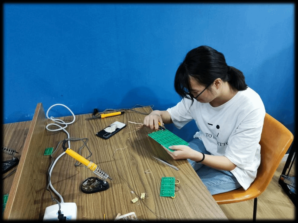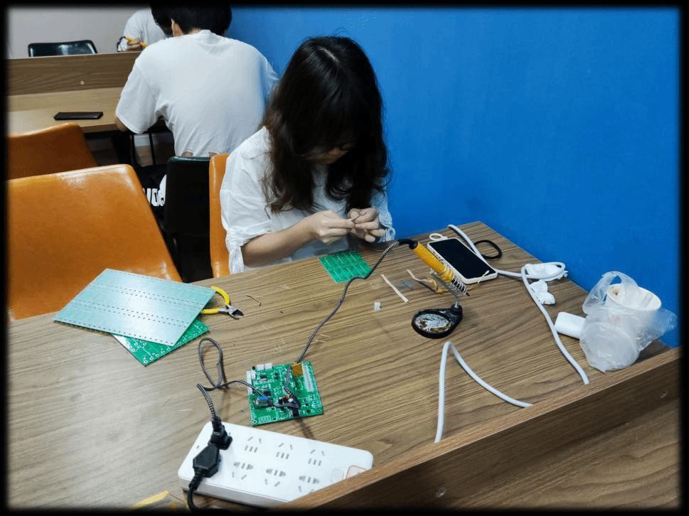 最后,陈俊吉与王国树两位老师鼓励同学们要养成自主学习、自主提升的能力,切勿“三天打鱼,两天晒网”,要多利用业余时间到工作室,自主进行焊接练习,为之后PCB的制作与设计等打下坚实基础。