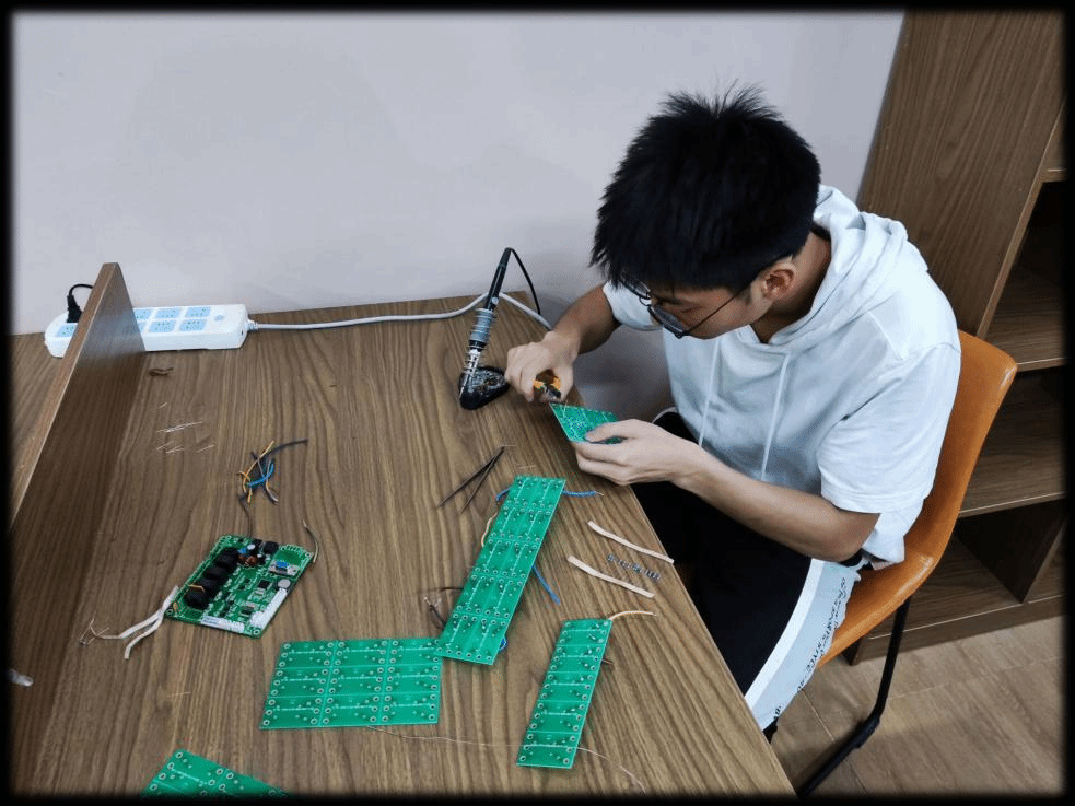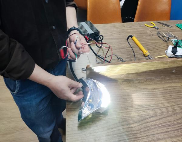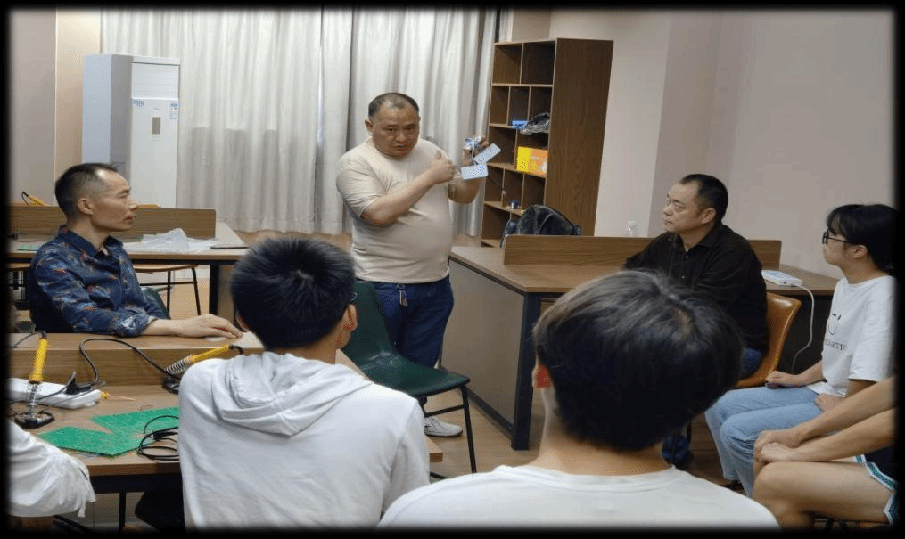 为加强同学们的动手能力,智控研发工作室于5月8日开展了第二次焊接实践培训,本次培训由项目工坊导师陈俊吉博士主持,并再次特邀从事电子产品设计、开发和管理的何建财老师以及从事电子产品测试与推广的重庆旭光科技有限公司宋智贤销售副总对工作室成员进行实训指导,另外何老师和宋总在工作室进行了摩托车车灯产品现场调试;同时还有幸邀请到通信与信息工程学院的王国树副院长对成员的焊接成品进行点评,在校企双导师的协同指导下,同学们的实践信心与实操技能得到了进一步增强。