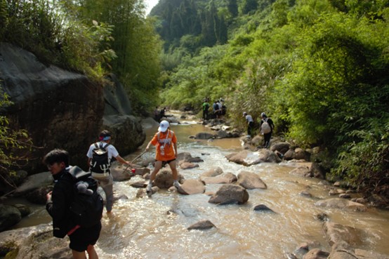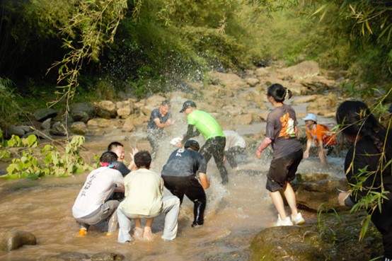 五月的骄阳把身体晒得火辣,大家纷纷卷起裤腿顺溪而下,入水的那一刻的清凉大大缓解了身体疲劳。顺着水流探索大自然的神奇,当然还有那必不可少的溯溪保留节目——打水仗,抓螃蟹。
