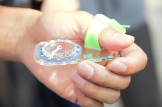 野外定向,又名定向越野,是一种在野外利用地图和指北針,以不同形式去完成一段路程,在检查点为检查卡打上印记的运动。本次课程具体任务是,在脱离地图指引情况下的规定时间之内依据教练口述的信息,快速移动位置至打卡点附近区,搜索具体目标区域,脱离了熟悉的校园,来到了陌生的环境,在经过初期的慌乱后,大家迅速调整状态,利用了平时训练所掌握的定向知识和技巧觅迹寻踪,最后在终点位置“活捉”目标教练一名。