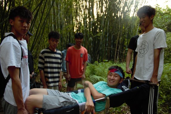 野外有人受伤如何正确处理伤员?上岸后教练就地取材,讲解、演示并指导队员们制作临时切可靠的担架。作为一项户外急救技能之一,大家都认真学习,并轮流扮演伤员让其他队员进行救助练习。通过一轮轮一次次地抬起放下,大家深刻体会到了户外安全意识与户外互助精神的重要性。