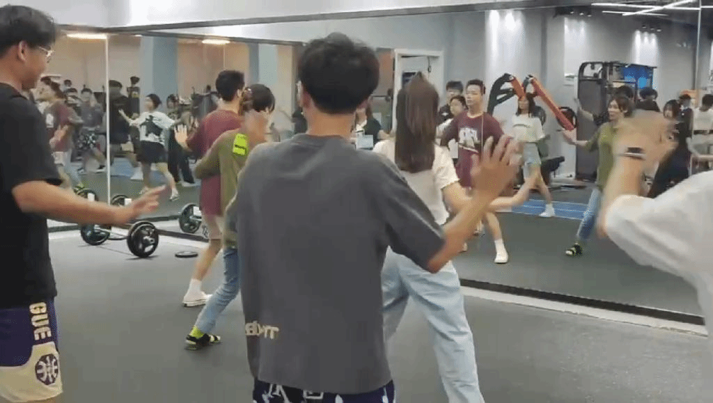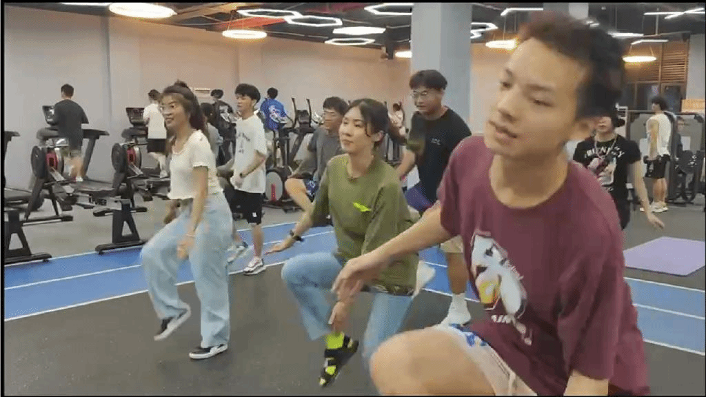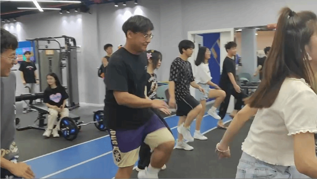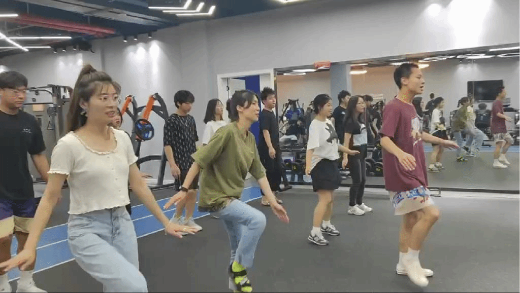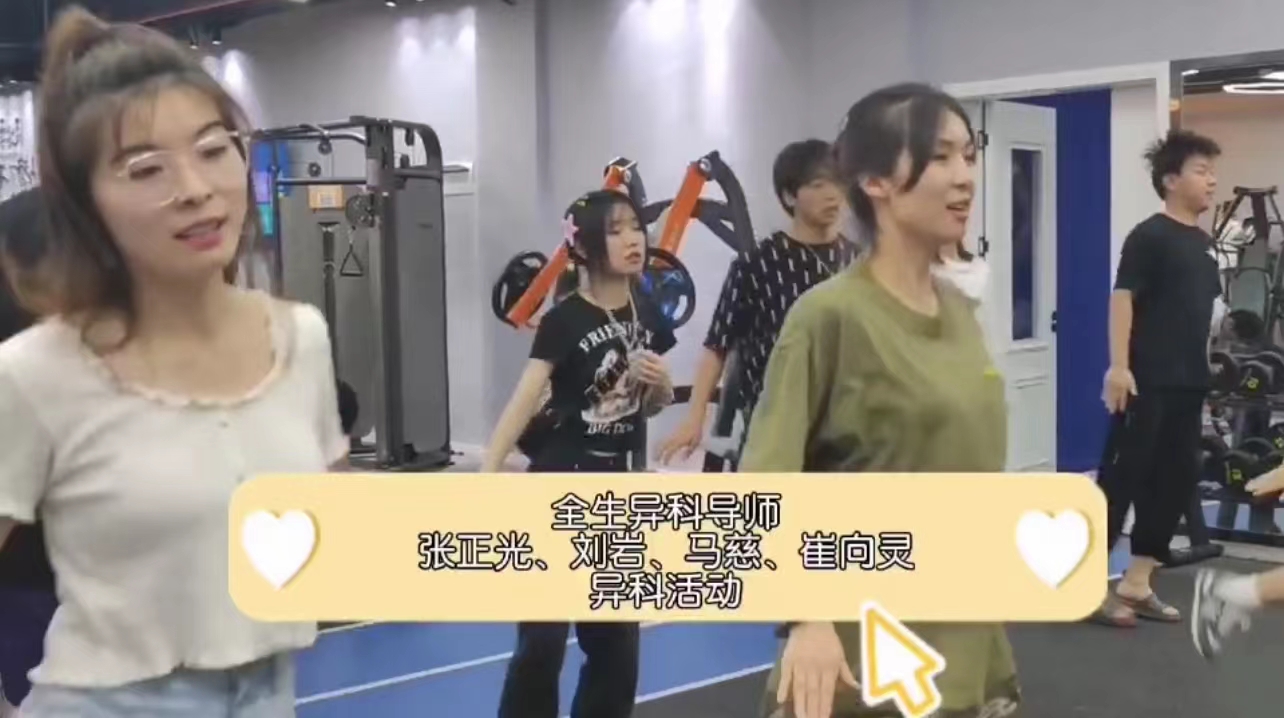 在异科导师同学们的带领下,气氛越来越好,练习途中同学们部分不标准的动作令人不禁捧腹大笑,笑过之后又充满激情的投入到练习中去。尽管知道这个健身操很累,但依然阻挡不了同学们的热情,同学们积极的参与其中。健身房里,同学们随着音乐的旋律舞动,到处洋溢着青春的气息与同学们的欢声笑语,围观的小伙伴也越来越多。同时,通过这样的活动也很好的践行了我校利用书院空间,联动融合,打造生生共通空间,学生和书院、学生和导师的奇妙互动关系,为师生的生活增添一份别样的色彩。