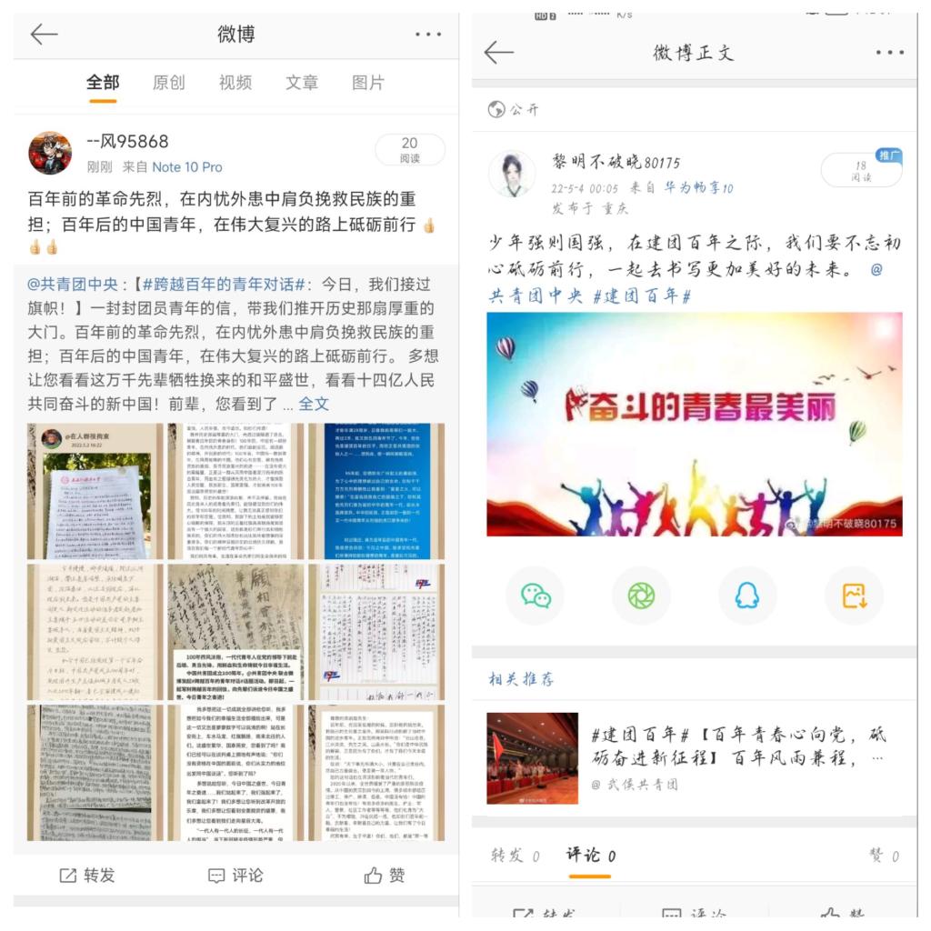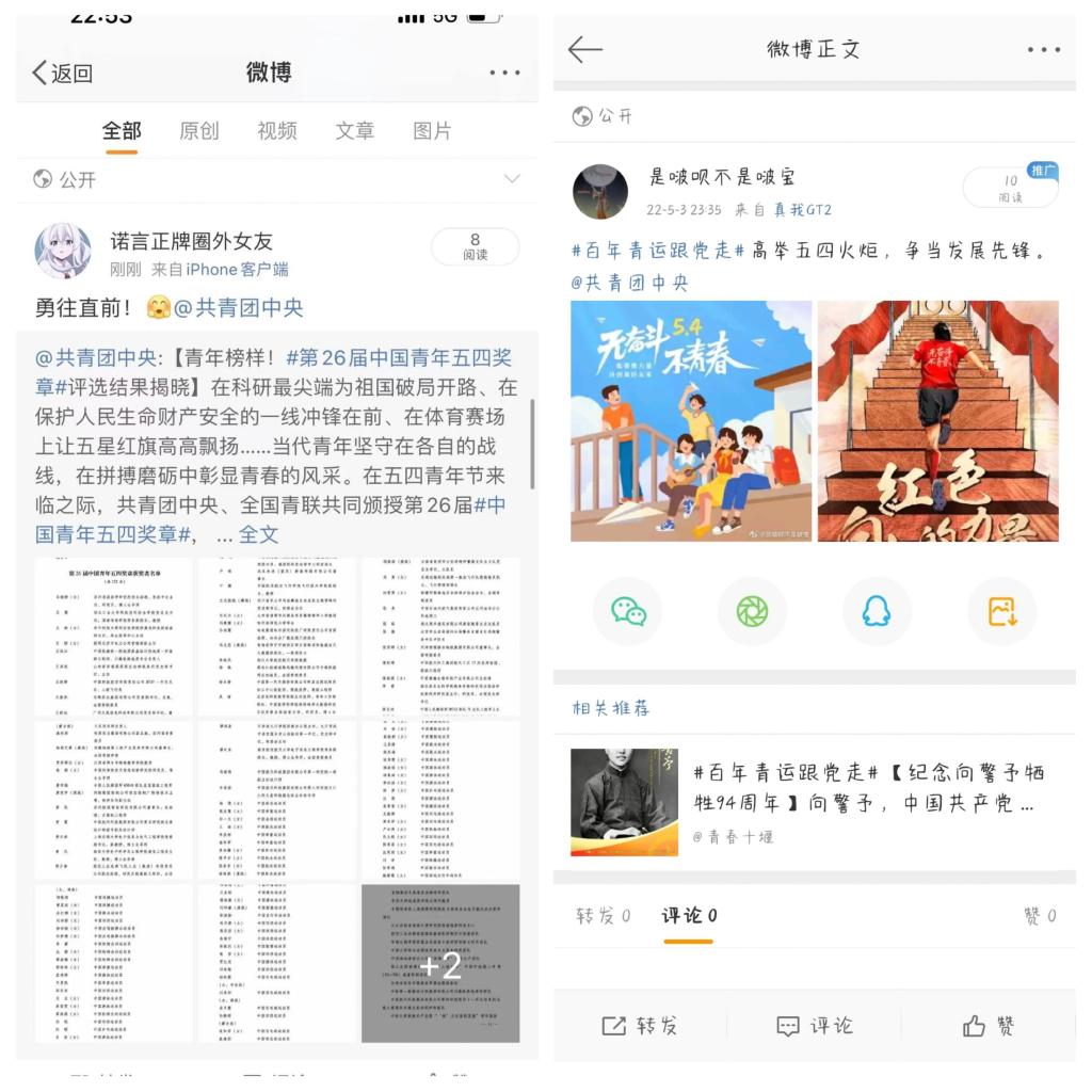 为实现“线上+线下”宣传一体推进,淬炼•国际商学院团总支还在网络平台上开展了“五四”宣传活动,发动团员青年参与网络接力活动,让大家积极参与共青团中央微博微信发起的“五四青年节”“建团百年”“共青春”等网络话题互动。同学们积极踊跃参加,表达了新时代青年对“五四”精神的理解,展现了新时代青年的青春风采。大家纷纷表示,从现在开始要努力做好自己,弘扬“五四”精神,为实现“中国梦”贡献自己的力量。