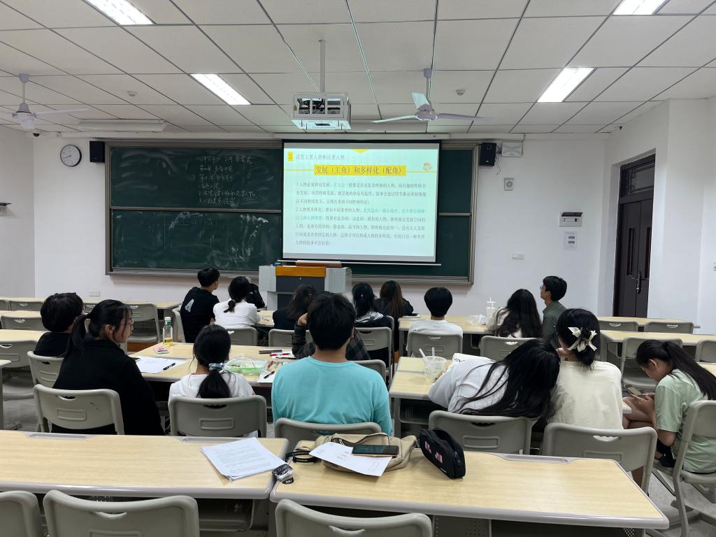 苏老师首先讲解了主角发展的两种弧线,然后以《甄嬛传》为例阐述人物的多样化设置,她说:“故事的主角一般都是具有复杂性格的人物,而且他的性格会有发展。所谓性格发展,就是他的命运有起伏,故事会通过情节推动来展现他在不同的情况下,呈现出来的不同性格特征;而人物的多样化,是指要有不同类型的人物,尤其是在一部小说中,至少要有两种以上的人物类型。既要有复杂的、动态的、圆形的人物,即性格有发展空间的人物,也要有简单的、静态的、扁平的人物,即性格比较单一、没有太大发展空间或者类型固定的人物。这样才可以构成人物的多样化,否则只有一种类型人物的故事不会好看。”之后,苏老师便围绕“扁平人物”和“圆形人物”展开,她提到网络小说中塑造的“霸道总裁”和“傻白甜”这种扁平人物,是失真的、不合常识、不符逻辑的。而提到《神雕侠侣》中的“小龙女”时,同学们有了疑惑,同样都是扁平人物,为什么“小龙女”的设置成立?苏老师说:“扁平人物是要同圆形人物搭配的,为什么‘小龙女’这样的扁平人物能成立,因为她同‘杨过’形成互补。主导是‘杨过’这个圆形人物,有主次区别。而‘霸道总裁’+‘傻白甜’是‘扁平+扁平’。”老师还顺便为我们普及了中国古典章回小说中“1+3”人物设置模式。