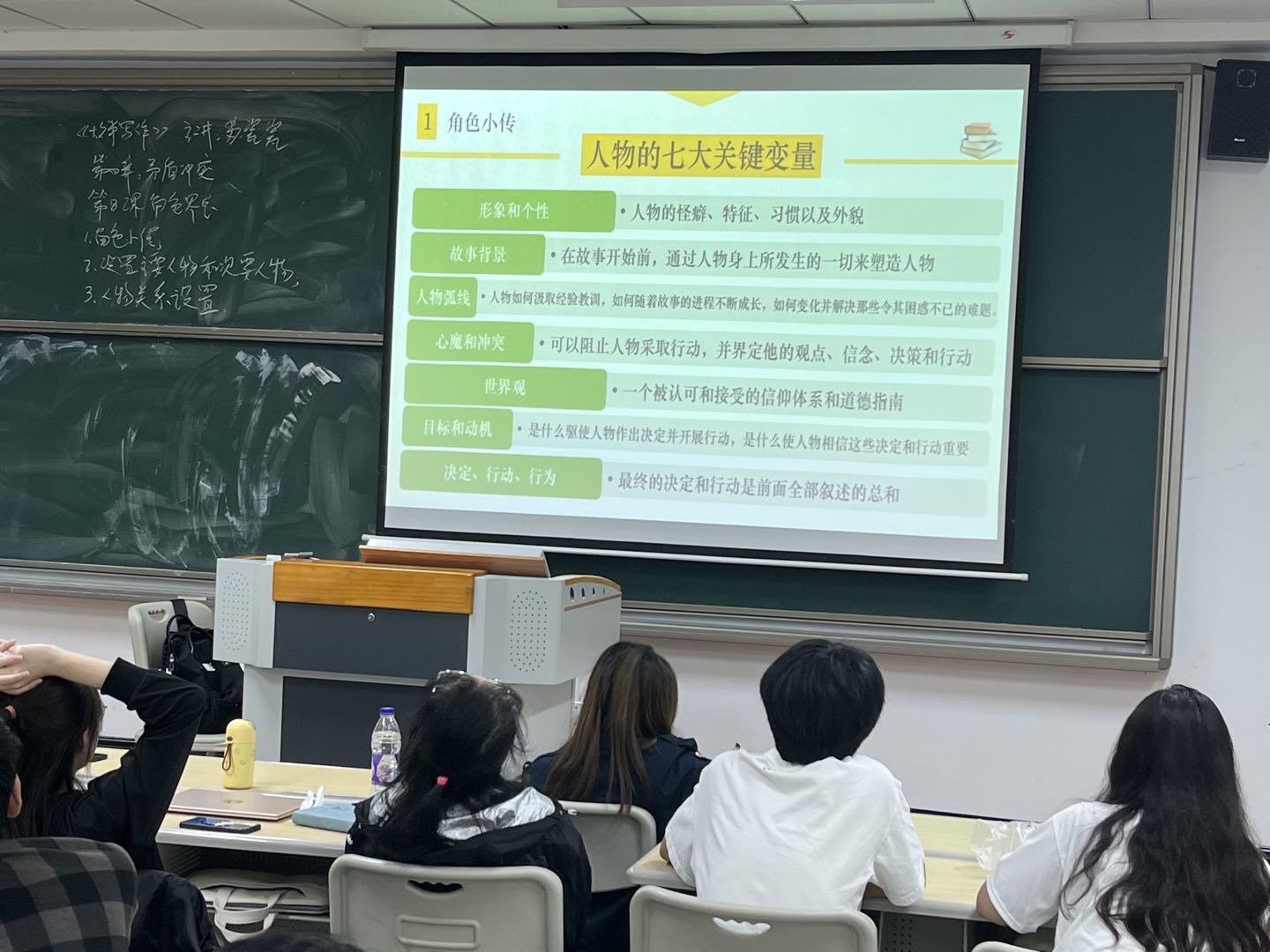 在第一单元“角色小传”中,苏老师让我们对人物的七大关键变量进行讨论,十分钟后,四组同学分别表述了自己小组的观点,大家达成了一个共识——并不是所有人物都需要包含这七大关键变量,这是由故事的体量所决定。在我们讲完后,苏老师以台湾作家袁哲生的小说《密封罐子》为例,逐一分析人物塑造的七大变量:1.形象和个性;2.故事背景;3.人物弧线;4.心魔和冲突;5.世界观;6.目标和动机;7.决定、行动、行为。她强调:“塑造的人物的一切都取决于第七个最终的变量,人物的决定、行动和行为所具有的意义和影响取决于作者在开始行动之前、期间或之后如何处理前六个变量。”接着,苏老师讲解了人物的三维空间,以及每一个维度的区别。在理论知识讲授后,苏老师让我们写下自己原创小说主人公的七大变量,即“角色小传”。大家奋笔疾书,十五分钟后,同学们上传完自己的角色小传,苏老师因材施教,根据每个同学的不同问题进行指导。课间休息,大家在小憩十分钟的同时也在消化知识,有的同学决定大改文章,有的同学找到了塑造人物的方向。