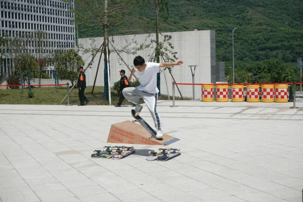 此后“Ollie跳远”“skate”“抢滑板”等精彩的项目和小游戏一个接一个的进行,现场的气氛也一度火热,欢呼声、鼓掌声、滑板落地的声音交织在一起,汇编成这场交流赛最青春的序曲,少年就该追风逐浪,永远肆意张扬的追求他们所热爱的。