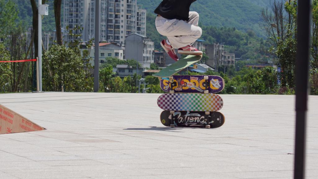 首先进行的项目是“Ollie”跳高比赛,以滑板为障碍物,滑手以带板飞行的方式越过障碍物,在成功后不断累加障碍物高度,直至决出跳跃最高的滑手。