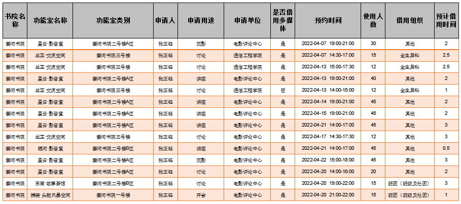 最“热门”:四月,小石潭·多功能活动室是使用次数最多的。