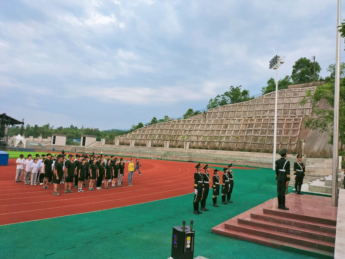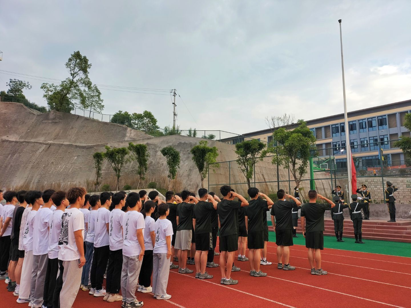 身为一个军事爱好者社团都会有国旗护卫队的存在,国旗护卫队承载者一种精神,一种激励青年人砥砺前行的精神!清晨,薄纱般雾气渐渐消散,大地从睡梦中苏醒,迷彩俱乐部迎来升旗仪式。当国旗班迈着铿锵的步伐走来,一切准备就绪,随着雄伟的国歌声响起,迷彩俱乐部每一位成员的眼睛都追随着冉冉升起的国旗;每个人都行着庄严的军礼……在这一刻我们心中无比骄傲,无比自豪,坚定信念,为共筑“迷彩”奋斗努力!