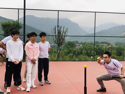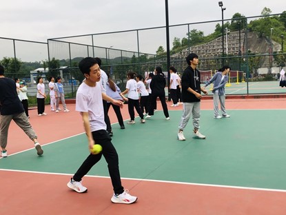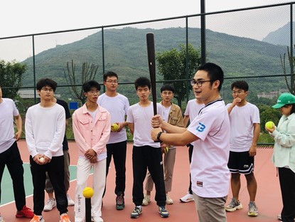 棒球运动是一种以棒打球为主要特点,集体性、对抗性很强的球类运动项目。它在国际上开展较为广泛,影响较大。在美国、日本尤为盛行,被称为“国球”。其也是一种团体球类运动,法定比赛人数最少为9人,其近似的运动项目为垒球。棒球球员分为攻、守两方,利用球棒和手套,在一个扇形的棒球场里进行比赛。比赛中,两队轮流攻守:当进攻球员成功跑回本垒,就可得1分。九局中得分最高的一队就胜出。本次棒球理论和体验课程指导教师是工作繁忙,但是愿意放弃吃饭时间来到训练场教授指导的谈胜老师,队员们也十分珍惜这次宝贵学习的机会。