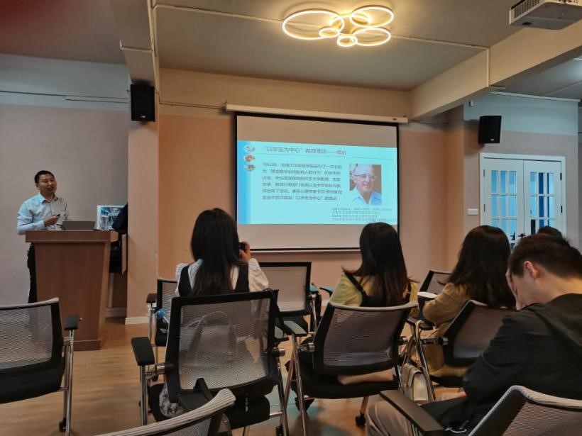 “20世纪,美国心理学家罗杰斯认为,学生的学习是一种经验学习,它以学生经验的生长为中心,以学生的自发性与主动性为学习动机。”朱伟教授以“以学生为中心”教育理念的提出进入今天主题,从1997年开始,“以学生为中心”的教育理念逐渐得到深化。联合国教科文组织1998年公布的《21世纪高等教育宣言:展望与行动》也标志着“以学生为中心”的教育理念的正式形成。朱伟教授指出,虽然“以学生为中心”的教育理念形成时间不长,但在各教育阶段的发展极为迅速,也充分体现其导向性。同时他根据自己的从教经验,提炼出四点教育教学认识,与部门教师分享和共勉。他强调,以学生为中心并不等于一切都迁就于学生,而是思考如何去激发学生的学习兴趣,帮助学生找到合适的学习方法;要去深入了解学生,只有正在了解学生,才能在更好地帮助学生成长的同时,教师自身也得到成长;将思政元素融入课程中,能在教学过程中潜移默化的影响学生价值观、人生观和世界观,达到润物细无声的效果;通过诱导出学生的学习内因来激活学生,从而让学生真正意义上参与到教学中来。