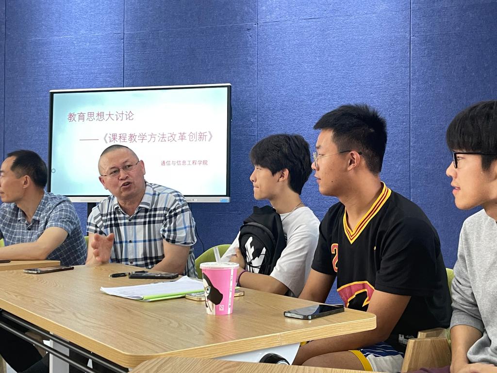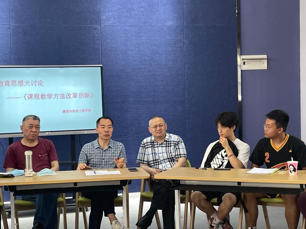 为贯彻落实我校2022年教育思想大讨论专项工作,根据《通信与信息工程学院-2022年教育思想大讨论工作实施方案》的部署安排,4月27日上午,通信与信息工程学院在綦河书院2号楼南渊·创写活动室召开了以“课程教学方法改革创新”为主题的大讨论活动。此次活动由通信与信息工程学院王国树副院长主持,全院教师及学生代表参与并展开讨论。