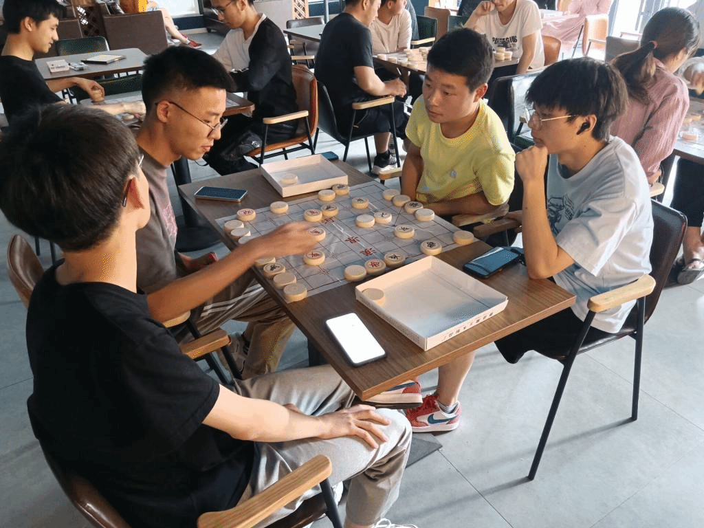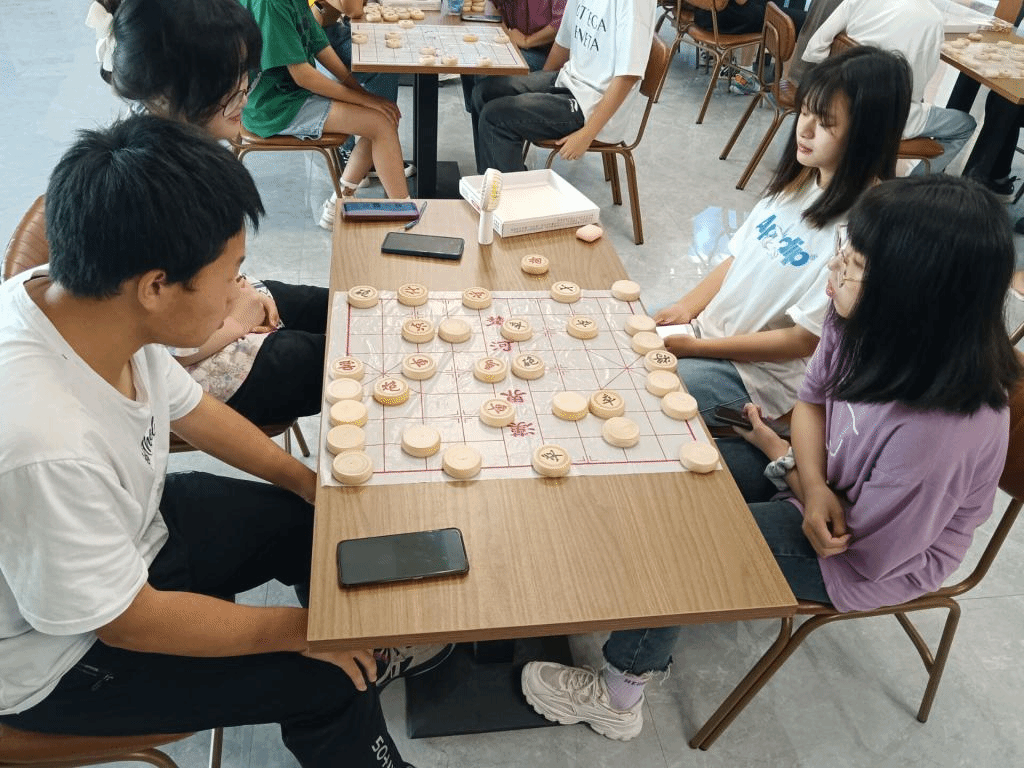 活动现场负责人们耐心地给新接触象棋的小萌新讲解玩法,小萌新也很积极学习配合。在现场可以看见每桌都有小萌新观看老手或者负责教学的组织者玩揭棋,小萌新目不转睛地看着负责人的现场教学,并及时提出疑问。有些理解能力好的萌新已经迫不及待地想实际操作;有些萌新还在认真学习揭棋的玩法;有些萌新已经激情澎湃地开始实际操作。在这样的气氛烘托下,现场的同学们都已经很快理解并开始执棋。